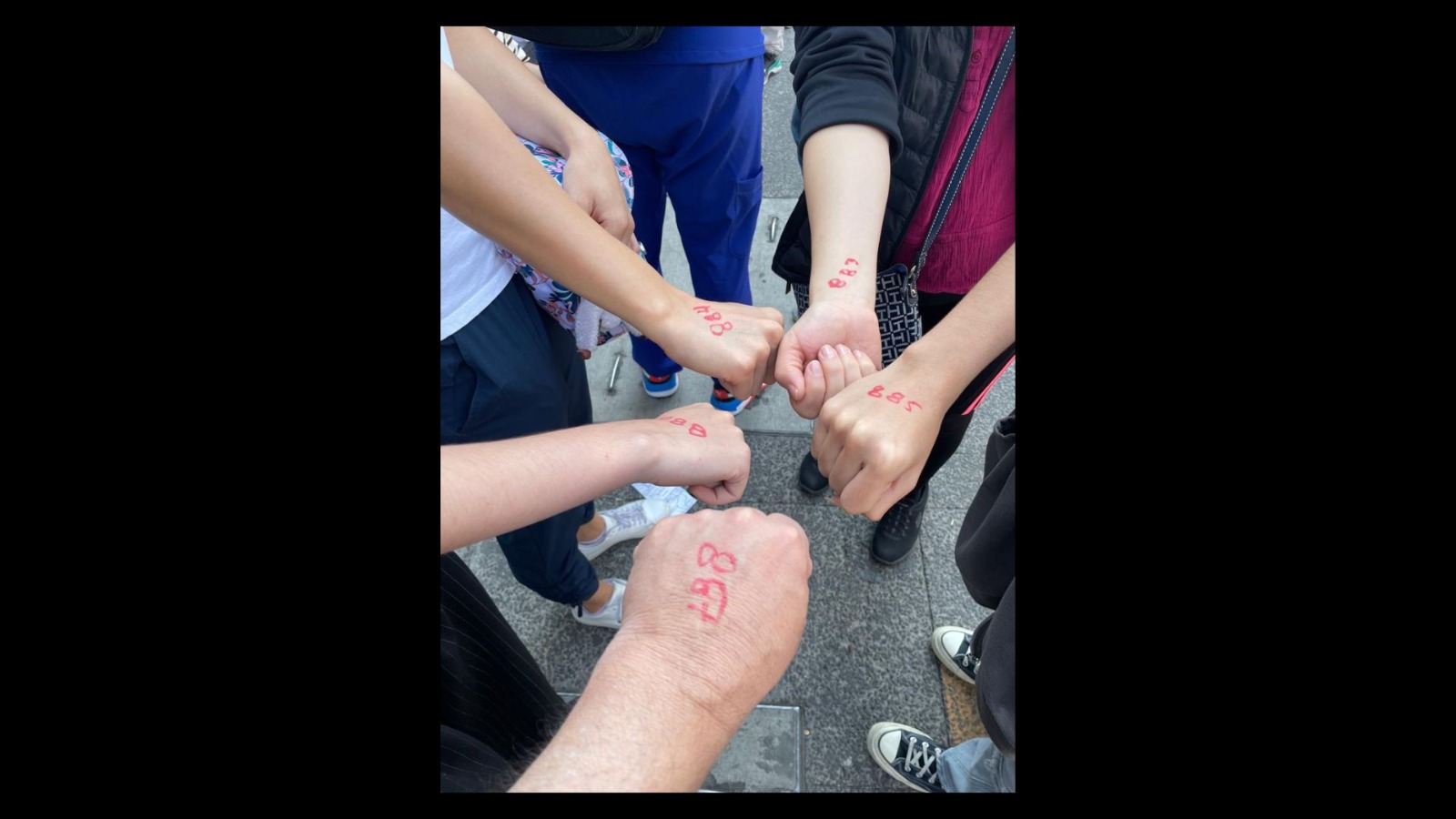La fila ya dobló y alcanzó la cabeza-cola hasta confundirse. Somos miles, porque nos han escrito el número 887 en el dorso de la mano y nos encontramos a la mitad del primer rosario. (“No manches, son las tres”).