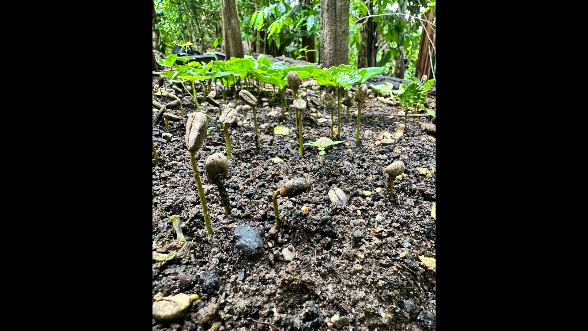 Cuando salimos del invernadero conocimos más de la planta de café: el soldado, como le dicen algunas personas al brote de la planta que aún conserva la semilla, la mariposa, que es la forma que se pueden observar con las primeras dos hojas que le salen al brote, y diversas variedades de plantas de café que, a simple vista, y con una pequeña explicación, se reconocían diferentes. Mientras caminamos entre las camas nuestros zapatos se llenaron de barro, la temporada de lluvias ha llegado y caminar se vuelve engorroso, los zapatos pesados y la pisada temerosa para quienes no estamos acostumbrados a caminar en el cafetal.