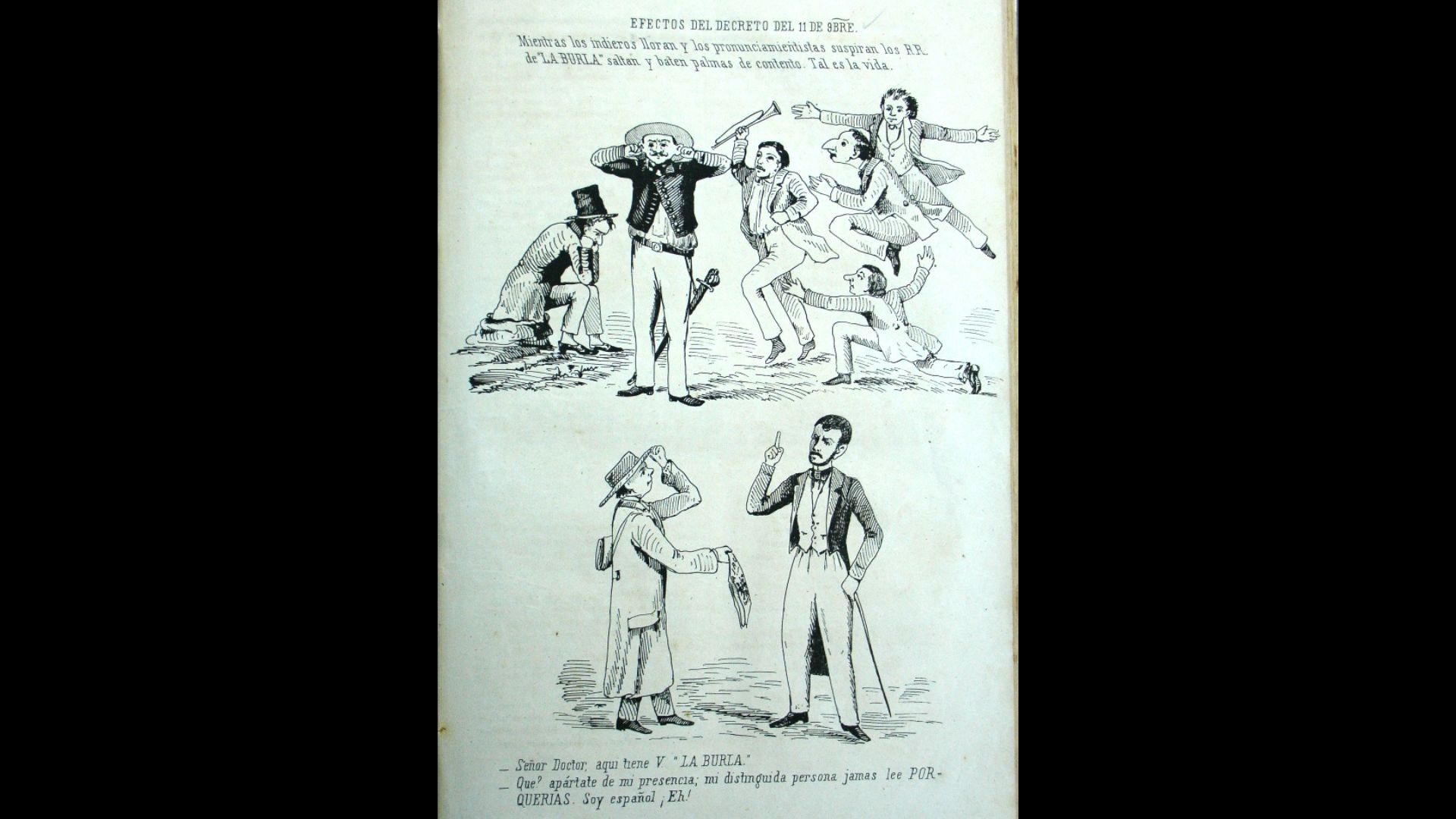 Pero el testimonio que pretendemos recuperar en esta ocasión es más de los primeros años del conflicto. Tiene una particularidad: se encuentra en un semanario satírico, y éste fue el segundo periódico de caricaturas que existió en Yucatán. Se trata de La Burla, una publicación en la cual participaron, con seudónimo, autores como José Peón Contreras, Eligio Ancona Castillo, Manuel Sánchez Mármol y José Patricio Nicoli. Como ilustrador -litógrafo, se encontraba José Dolores Espinosa Rendón.