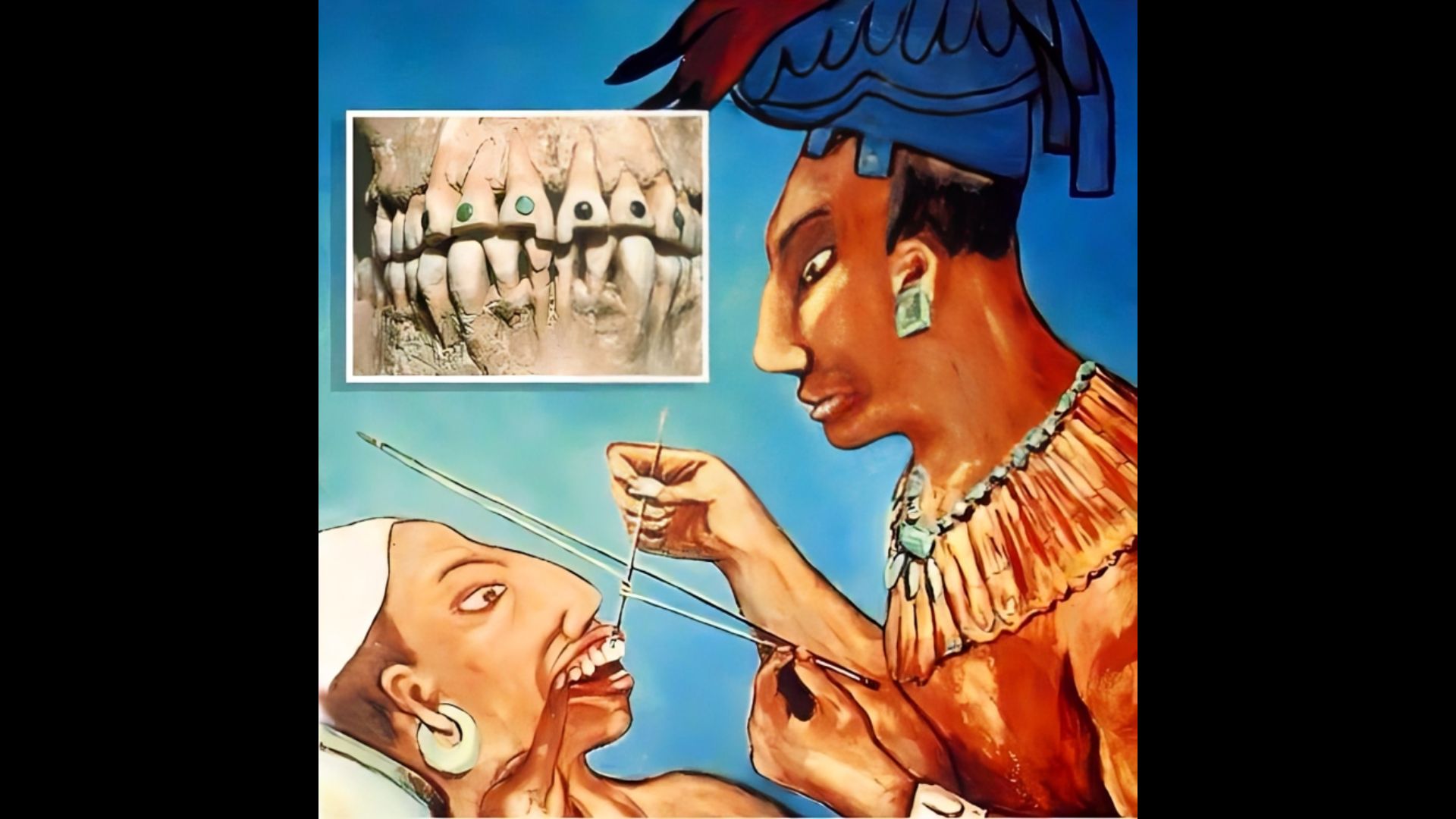 Dicha modalidad, realizada con delicadas limaduras lineales o con la incrustación de pequeños discos de pirita, jadeíta, hematita o turquesa no pudo haber tenido otro propósito que decorar los dientes. Sin embargo, para el período Postclásico la práctica de las incrustaciones había decaído notablemente para ser reemplazada por la consistente en la alteración del contorno de los dientes. Sabemos por los cronistas, que la gente que vivió durante dicho período acostumbraba limarse los dientes con el único fin de adornarse sin ninguna connotación mágico-religiosa.