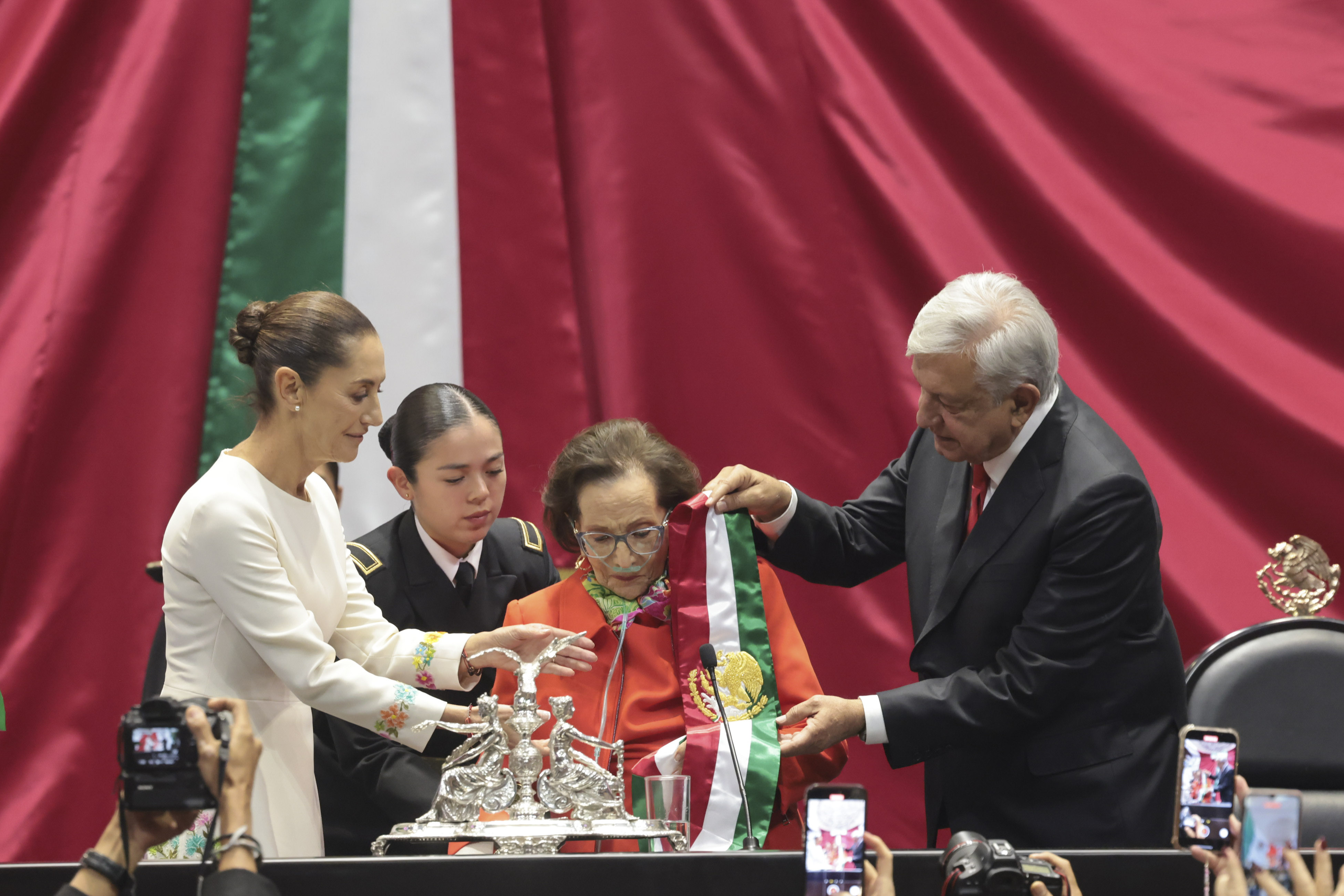 En la mesa directiva de la Cámara de Diputados, una mujer de rostro surcado por los años, de postura firme, aunque auxiliada de un respirador artificial, preside el relevo en la Presidencia de la República este 1 de octubre. Ella quedó a cargo de tomar la banda presidencial del mandatario saliente, Andrés Manuel López Obrador, y entregarla a la entrante, Claudia Sheinbaum Pardo, y de declarar a esta última como presidenta constitucional.