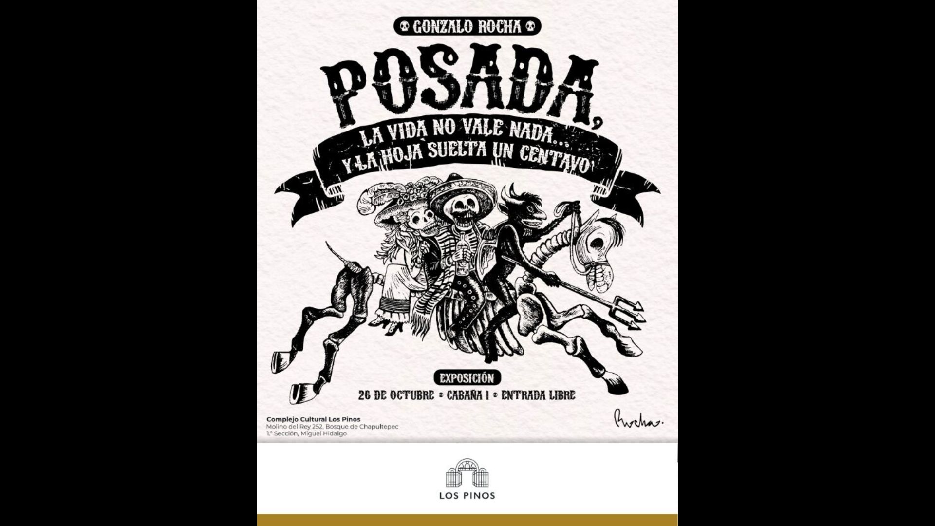 La novela gráfica que se presenta en esta exposición, eslabona decenas de obras maestras de Rocha y como contamos con muy poca información biográfica de Posada, el dibujante plasma poéticamente la vida interna de este prodigioso creador desarrollando una estratégica combinación de referentes históricos con fantasía literaria, que nos permiten vislumbrar el universo vital, el tiempo histórico y, a la vez, la inconmensurable imaginación y los mecanismos expresivos con lo que Posada fue construyendo sus imágenes, sus personajes, en su trabajo diario para proyectos editoriales e imprentas comerciales. En muchos de los grabados y litografías fuera de la novela, Rocha pone al tú por tú a Posada con Picasso, Goya, Chagall y otros gigantes del arte universal, para darle su justa dimensión y a la vez con humor, desacralizar a los gigantes de la pintura. Aunque la exposición sólo recoge sus trabajos en torno a Posada, Rocha forma parte de la gran Historia de la Caricatura Mexicana, que nos ha regalado muchísimos artistas de primer orden y de la cual el Complejo Cultural los Pinos ha ido dando cuenta, con dibujantes tanto ya clásicos, como la activa generación que hoy día nos hacen iniciar la mañana con una sonrisa, antes de abocarnos a las tristezas y complejidades de nuestro mundo.