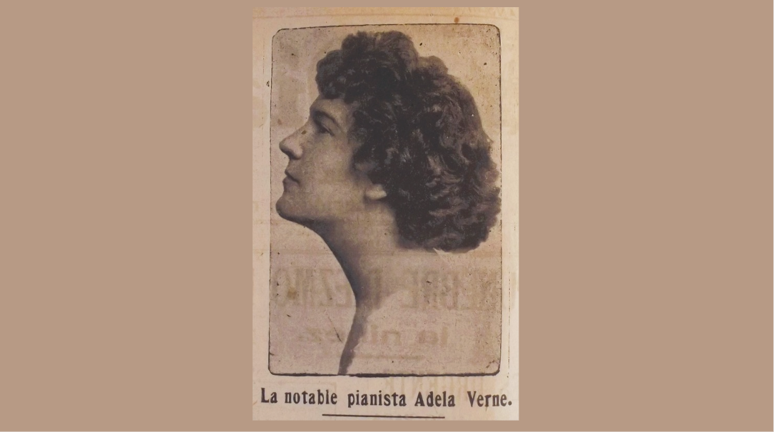 La información se encuentra en el Diario Yucateco, en su edición del 11 de octubre de 1909, bajo el título “La notable pianista Adela Verne”. Ahora bien, la brevedad a que obligó la nota apenas deja saber al lector que la artista había llegado a Mérida el sábado anterior, y que la señorita Verne, “eminente pianista bávara que acaba de obtener grandes triunfos en la capital”, había arribado acompañada de su representante, señor Luis David.