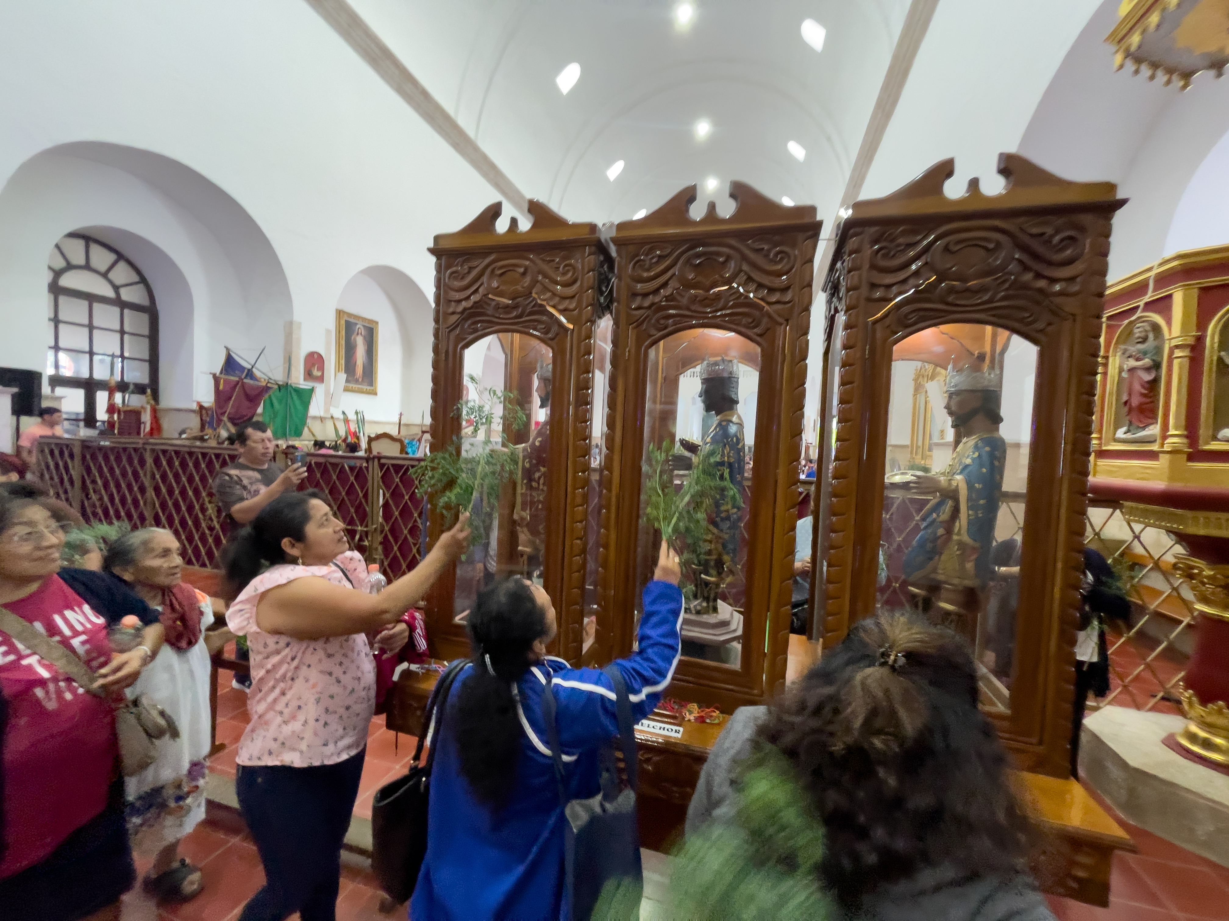 Pregunté entre los de la fila por qué usar ramas de ruda: “Es la tradición,” me contestaron. “Es por su olor, simula el de la mirra, el incienso”. Eso mismo pensaba mientras olía las ramitas durante la espera. Ese olor fuerte y herbal me recuerda colores guindas, no encuentro mejor obsequio fragante para emular los regalos entregados por esos tres reyes magos de oriente contada por la tradición.