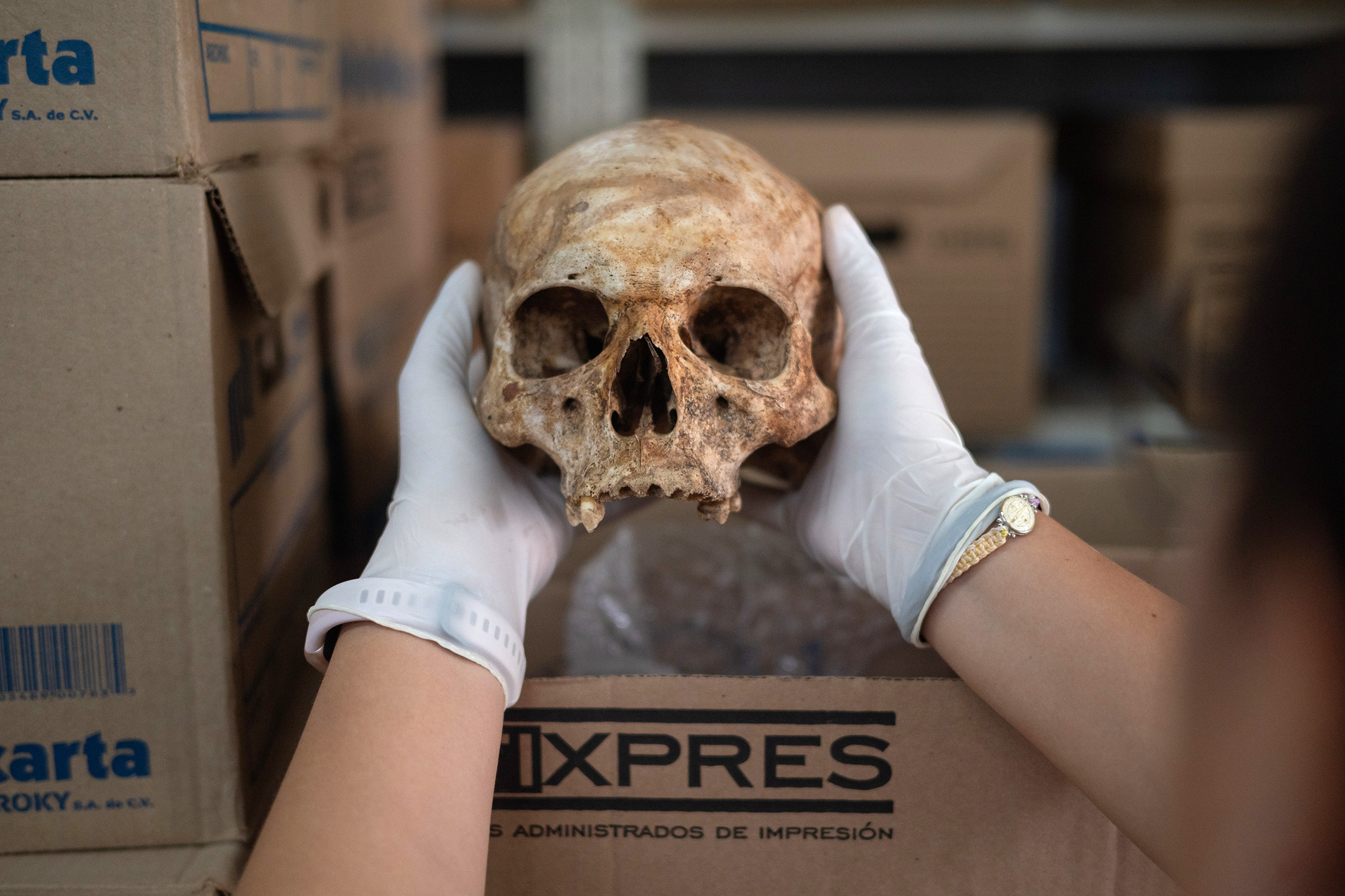 En la parte superior de este edificio se habilitaron varias salas, donde, en mesas improvisadas, se dispusieron los esqueletos provenientes de diversos sitios arqueológicos. Entre los más destacados se encuentran esqueletos de Playa del Carmen, Tulum, un osario de Chichén Itzá, Komchén, la gruta de Xcan en Yucatán, Cobá y muchos otros.