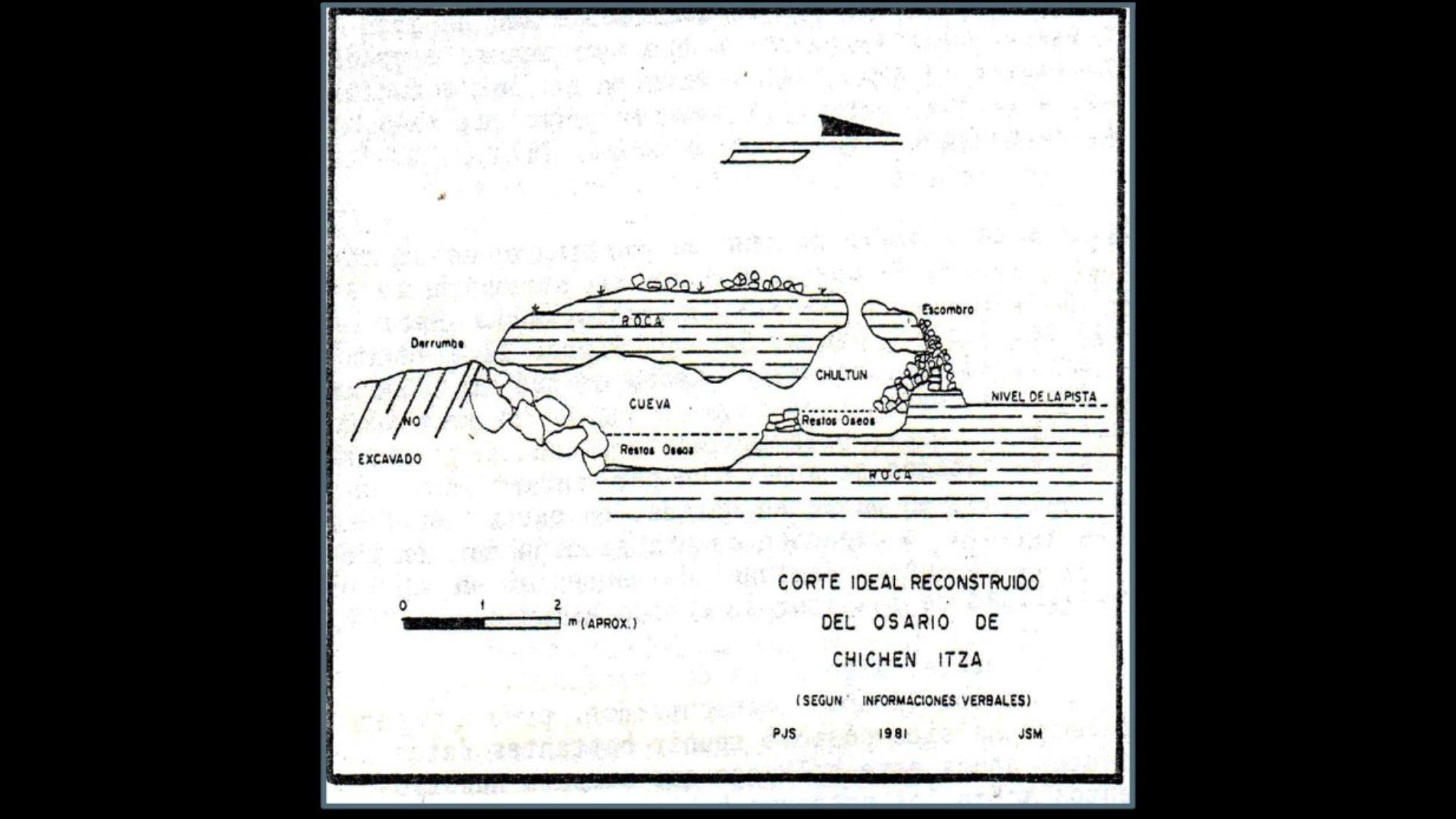 En junio de 1967, bajo la dirección del arqueólogo Víctor Segovia, se efectuó la excavación de un contexto subterráneo, mitad chultún, mitad cueva, en las inmediaciones del Cenote Sagrado de Chichén Itzá. En el interior de estas cavidades se encontraron los restos esqueléticos de más de 100 niños y jóvenes, y por lo menos un adulto junto con escasos materiales culturales, como fragmentos de cerámica. El conjunto de huesos fue clasificado como un osario debido a la ausencia de relaciones anatómicas entre ellos, ya que estaban mezclados. La única excepción fue el esqueleto adulto, dispuesto en la superficie del contexto como un enterramiento primario, es decir, conservando su orden anatómico.