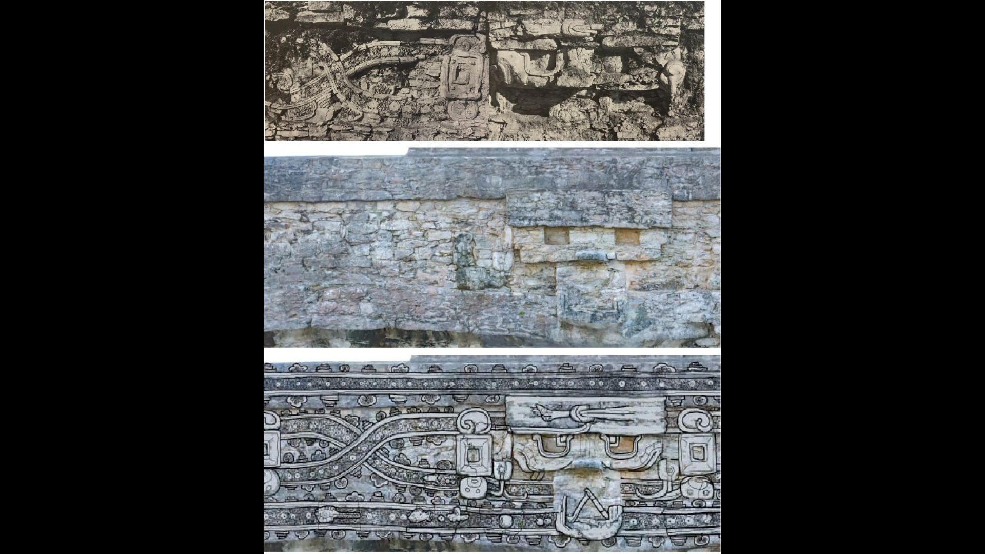 Imaginar estas formas completando la decoración del templo nos ofrece una interpretación muy distinta a la que transmiten las piedras lisas que lo recubren hoy en día. Y si damos un paso más allá, visualizando estos frisos decorativos en otros edificios del sitio, podemos concebir una ciudad revestida de representaciones simbólicas que reflejan la importancia vital del agua para una cultura asentada en un entorno cálido, donde la geografía limita el acceso al agua a través de los cenotes, convertidos así en fuentes esenciales para la vida y el desarrollo de toda actividad humana.