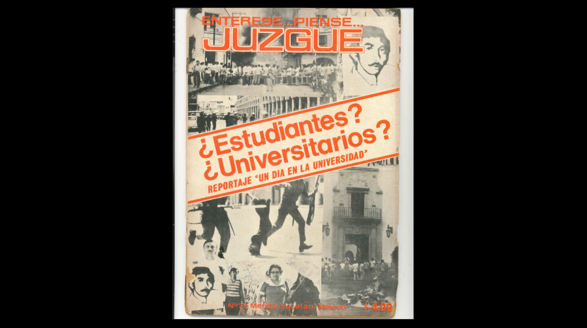 El 1 de mayo de 1973 llegó al público de Yucatán la revista quincenal Juzgue haciendo alarde de eclecticismo en su afán de reunir hombres y mujeres con puntos de vista heterogéneos, incluso divergentes, que animaron sus páginas mientras la voz oficial expuesta en la nota de los editores se diluyó en vaguedades que parecían poblar un reino etéreo. Sus portadas destacaron sucesos de carácter político, deportivo, de espectáculos o de resonancia internacional, muchas veces presentados entre signos de interrogación, en actitud que pudiera antojarse evasiva de compromisos claros, si bien estos se mostraban con nitidez en ocasiones precisas, como cuando reproducía un lema de campaña presidencial o elogiaba al mandatario yucateco tras rendir un informe de gobierno.
