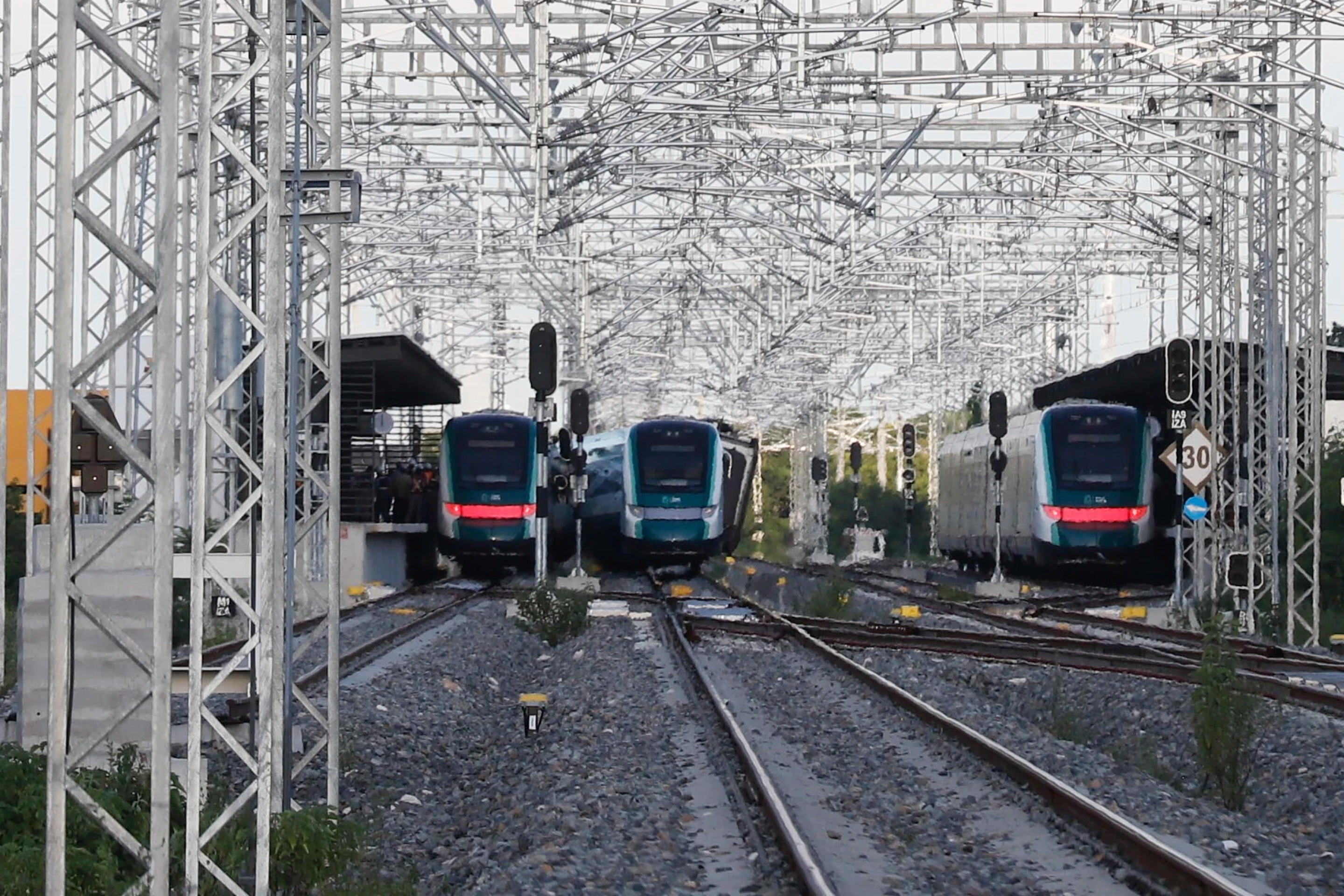 Tren Maya que cubre la rutaMérida-Cancún sufrió un percance en la estación de Izamal, Yucatán, cuando a baja velocidad, el