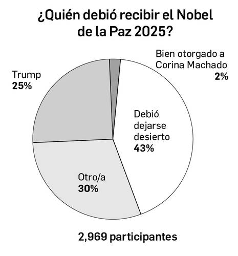 El premio Nobel de la Paz ha sido adjudicado a gente que ni remotamente lo merecía; ahora no ha sido la excepción. Machado no ha hecho nada en favor de la paz mundial. En vez de agradecer a la academia, le agradeció a Trump. Más arrastrada no podía ser.