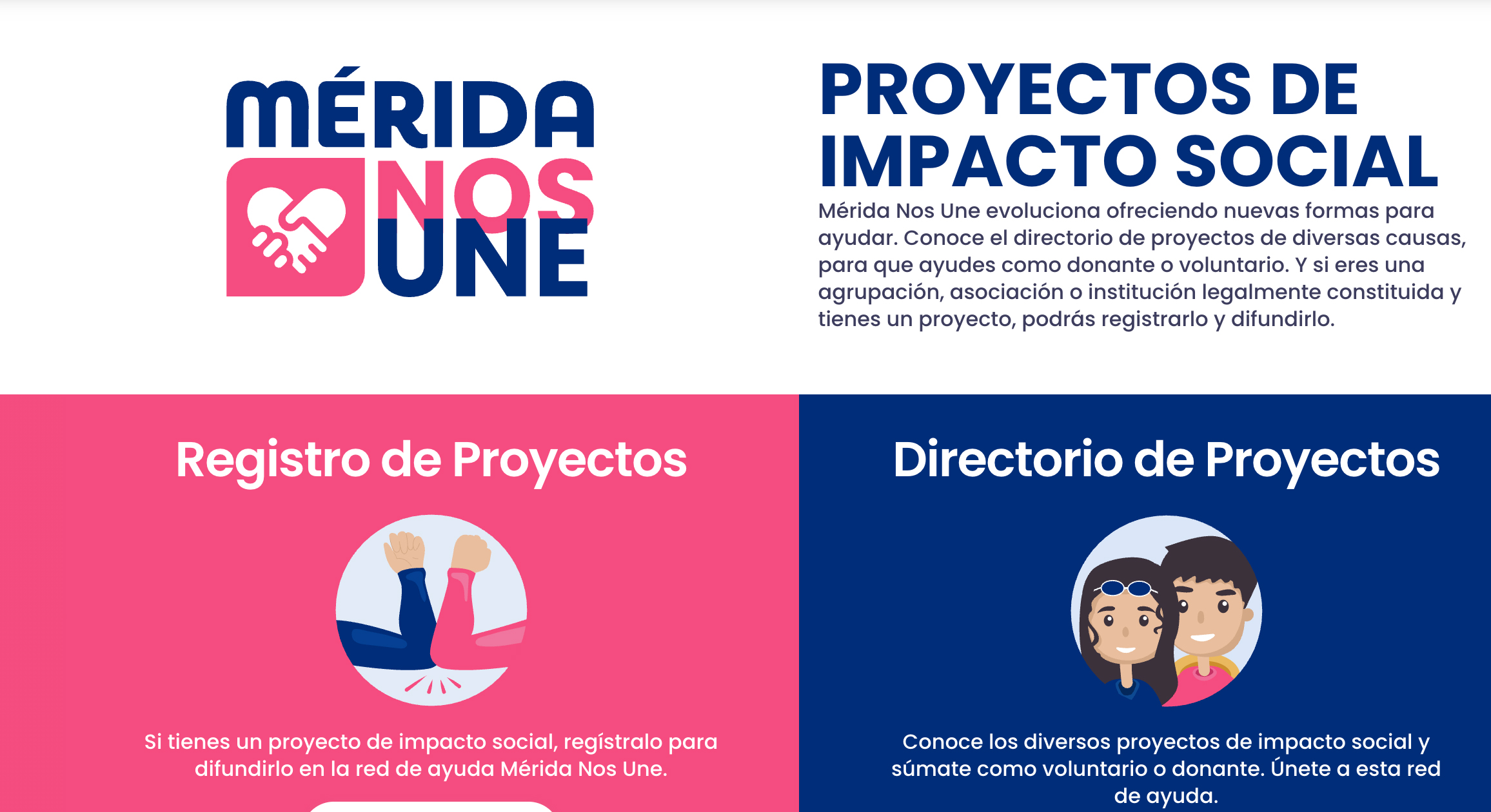 merida.gob.mx/meridanosune, creado durante la crisis de Covid-19, es una plataforma digital que vincula a ciudadanos, empresas y organizaciones solidarias con causas sociales y acciones comunitarias. Ha recibido reconocimientos de la ONU (2021) y del PNUD (2022) como una de las prácticas más innovadoras de gobiernos locales al emplear la tecnología para la vinculación social. Otras iniciativas como