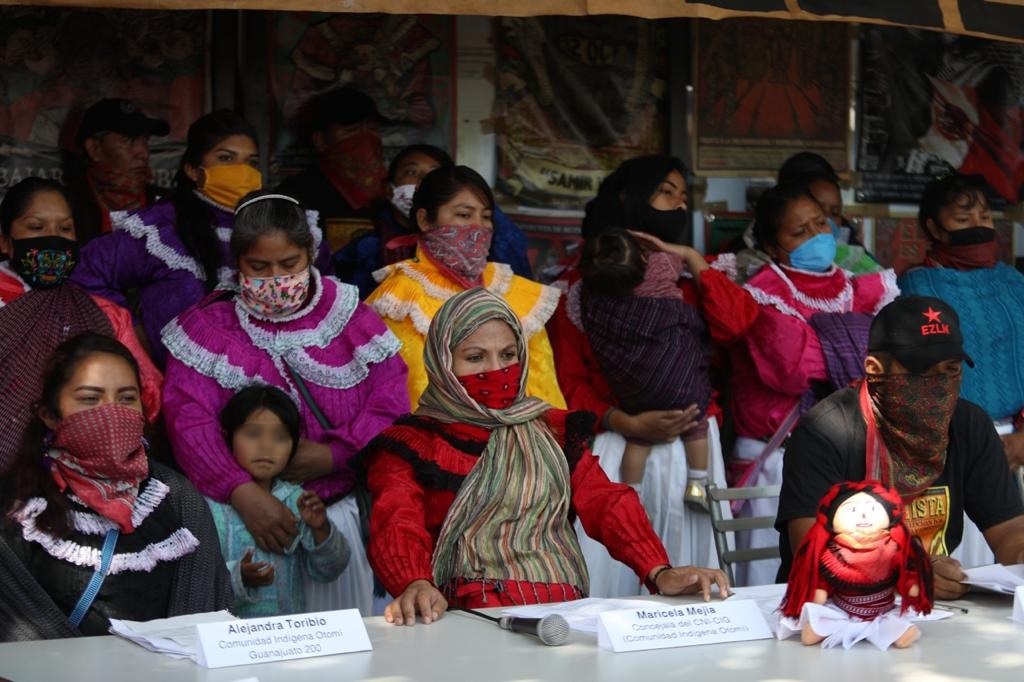 La representación otomí, por cada predio en posesión y disputa, expuso de manera detallada los agravios, racismo y discriminación, abusos policiales, detenciones arbitrarias, así como engaños e indolencia de las autoridades, durante 25 años de estancia en la Ciudad de México, que los llevó a la decisión de la toma indefinida, hasta en tanto sean satisfechas sus demandas de vivienda, salud, educación, condiciones para realizar su trabajo de venta artesanal. Asimismo, respecto de su pueblo de origen, señalaron que no aceptan en Santiago Mexquititlán la imposición en curso de una plaza turística. Ello enmarcado en una identidad política con el Ejército Zapatista de Liberación Nacional (EZLN), el Congreso Nacional Indígena (CNI) y su Concejo Indígena de Gobierno (CIG), la cual se expresó en el rechazo a la política oficial de impulsar megaproyectos y consultas “amañadas” que afectan a los pueblos indígenas y a sus territorios, a la presencia de paramilitares en Chiapas. Demandaron justicia sobre el asesinato de Samir Flores y la desaparición de los 43 estudiantes normalistas de Ayotzinapa.