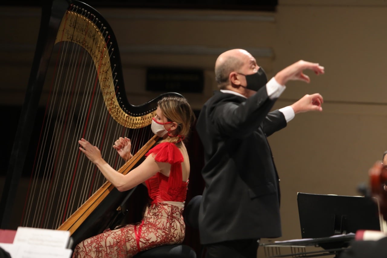 En un diálogo concertante con la orquesta, el arpa llevó al público a la senda del Olimpo, a las nubes donde las musas de Apolo enaltecen con su arte a los mortales.