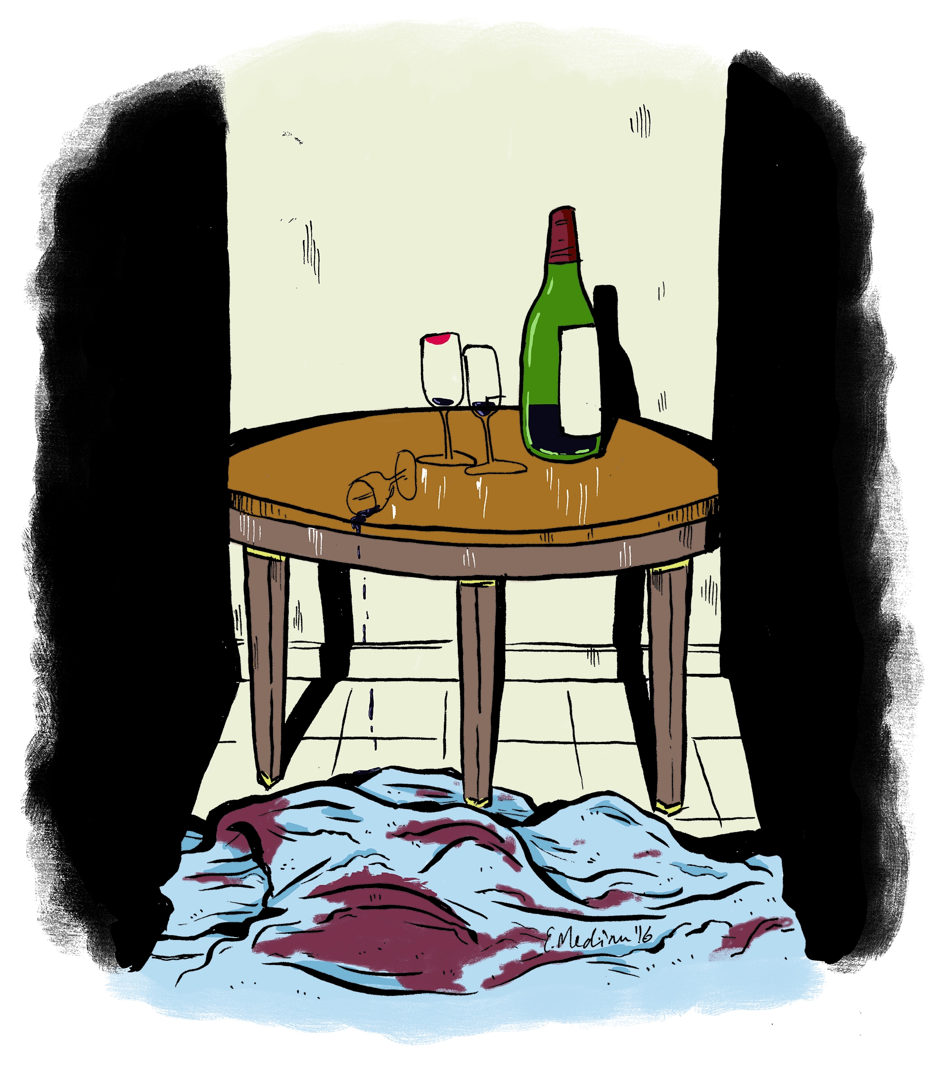 En la mesa de esa escena del crimen había tres copas de vino. Una con labial; las otras dos, no. Ningún policía, ningún soldado se percató entonces de ese detalle.