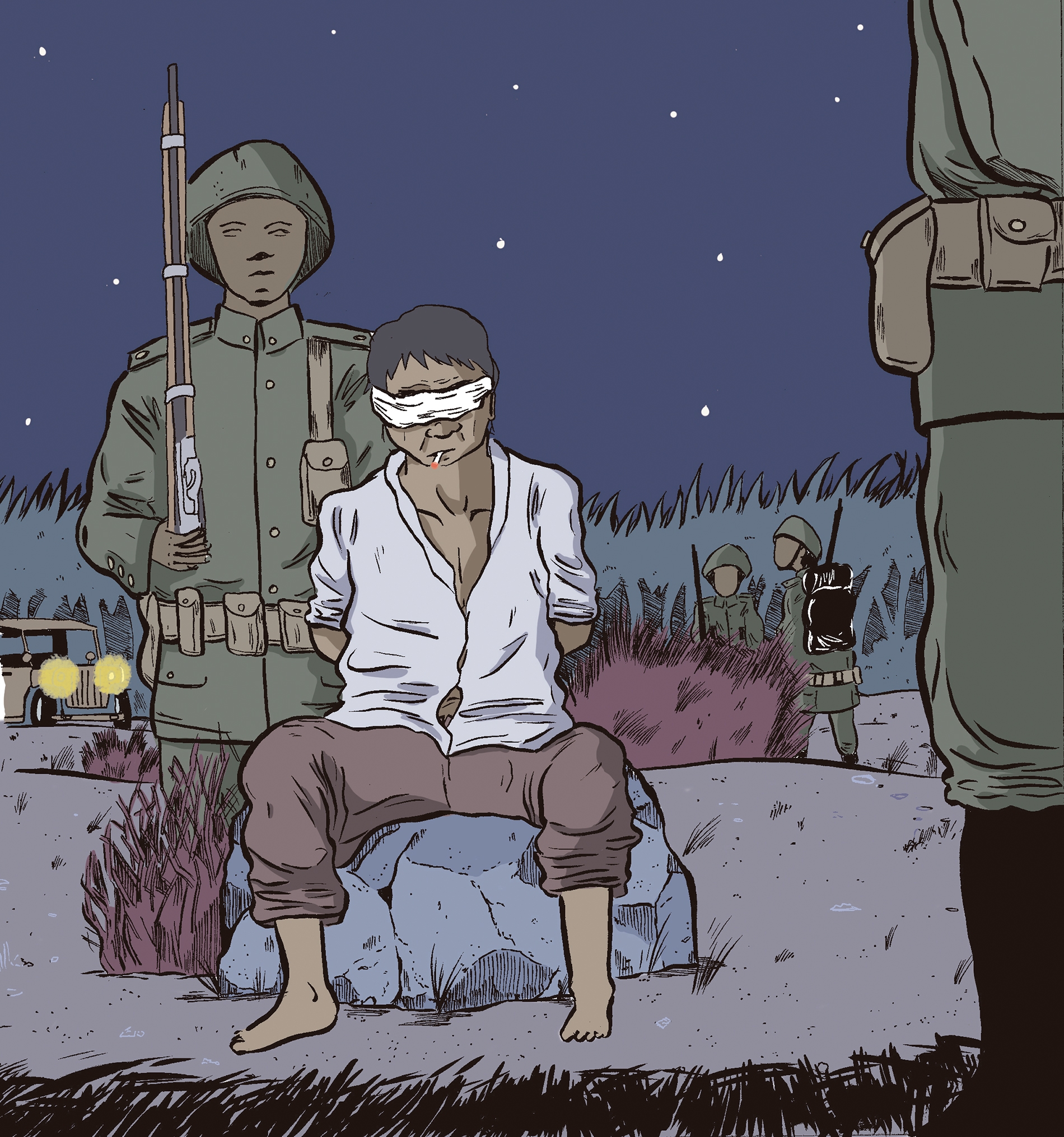 “Muy machito con la gringuita”, le gritó el militar que estaba al mando. “Muy machito. Ahora vas a ver lo que es ser hombrecito”. Polo no escuchaba. No podía. Tampoco era capaz de mantenerse de pie. Estaba desnudo, expuesto, y así cayó en la arena. Los soldados lo levantaron y lo sentaron en una piedra. Uno le dio agua. Otro, un cigarrillo. Se alejaron de él, esperando de que saliera el sol para matarlo.