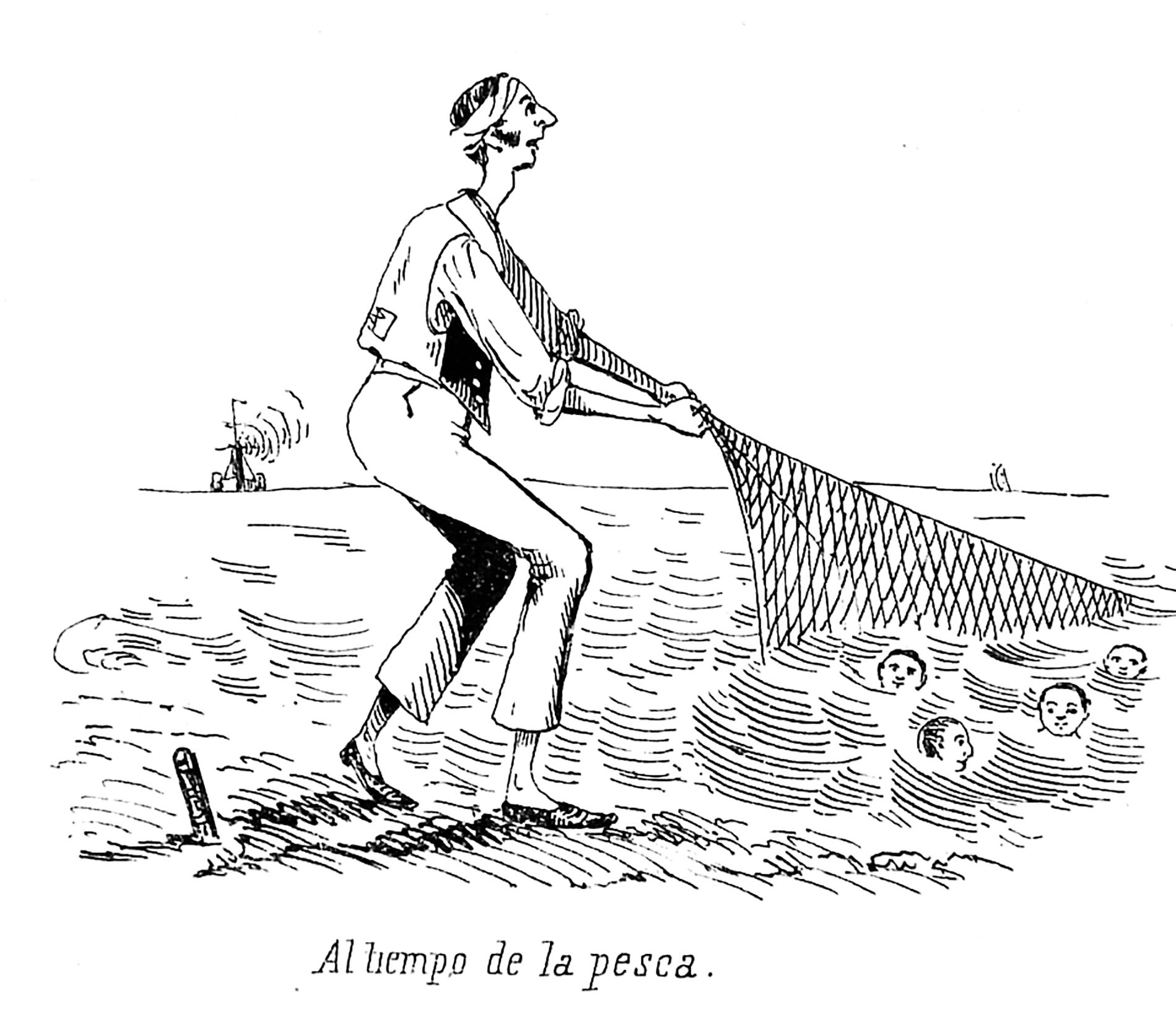 Litografía de José Dolores Espinosa en [i]La Burla[/i] (1860). Biblioteca Yucatanense