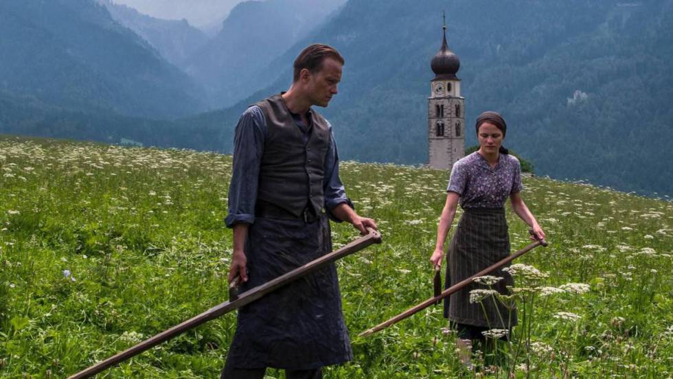 En 1938 la anexión pacífica de Austria hizo de Hitler un líder providencial de la nación vecina y de los austriacos los aliados circunstanciales de los alemanes, y en ese contexto de colaboración obligada, un objetor de conciencia como Franz se volvió un escándalo local, el recordatorio viviente del oportunismo o de la cobardía de quienes mejor se acomodaban con el nuevo orden de cosas. Renuente al reclutamiento militar y también al saludo nazi, el granjero soportará el sabotaje de su producción agrícola, el maltrato de su familia por parte de vecinos hostiles y la incomprensión de la Iglesia católica, más identificada con el poder invasor que con los temores y ansiedades de sus feligreses. Franz, un católico convencido, padece así el peso de las contradicciones de su iglesia, elige refugiarse en la añoranza bucólica de un paraíso perdido (Siempre pensé que podíamos construir nuestros nidos en lo alto de los árboles y volar hacia las montañas como lo hacen los pájaros) y se niega empecinadamente a aceptar las concesiones que le propone un conciliador presidente de tribunal (Bruno Ganz) para evitar más penas en la cárcel de Tegel en Berlín o la posibilidad de una ejecución.