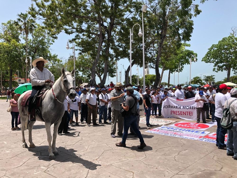 La marcha partió del museo de la Cultura Maya en el centro de Chetumal en la que unas 150 personas perfectamente organizadas con lonas que citaban frases como “todos juntos por las tradiciones, por el verdadero bienestar para nuestros animales y las fuentes de empleo” identificados como trabajadores de las calesas de Cozumel, a bordo de caballos o como criadores de gallos de pelea.