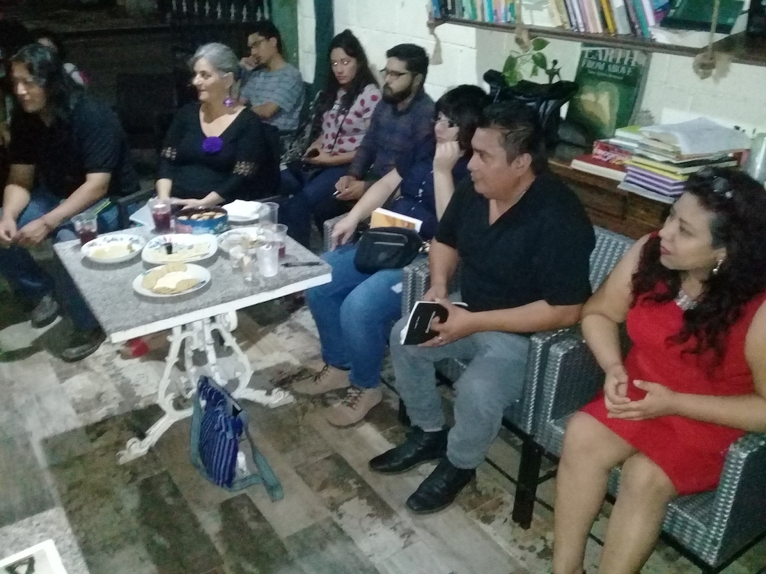 La noche estuvo llena de poesía erótica, amorosa, feminista, de protesta social, trova y haikú, organizada por el Colectivo “Colectivo” y Literatos Riviera Maya, en la sala de lectura La Hojarasca de Playa del Carmen.