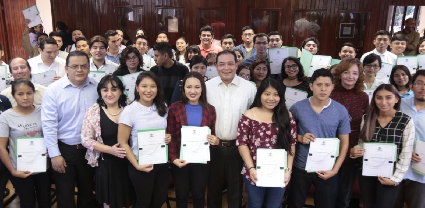 En Chetumal, el rector Ángel Rivero Palomo entregó reconocimientos a 56 alumnos que destacaron por obtener los Mejores Promedios de la UQRoo de dicha Unidad Académica, el 13 de diciembre en la sala de Rectores.