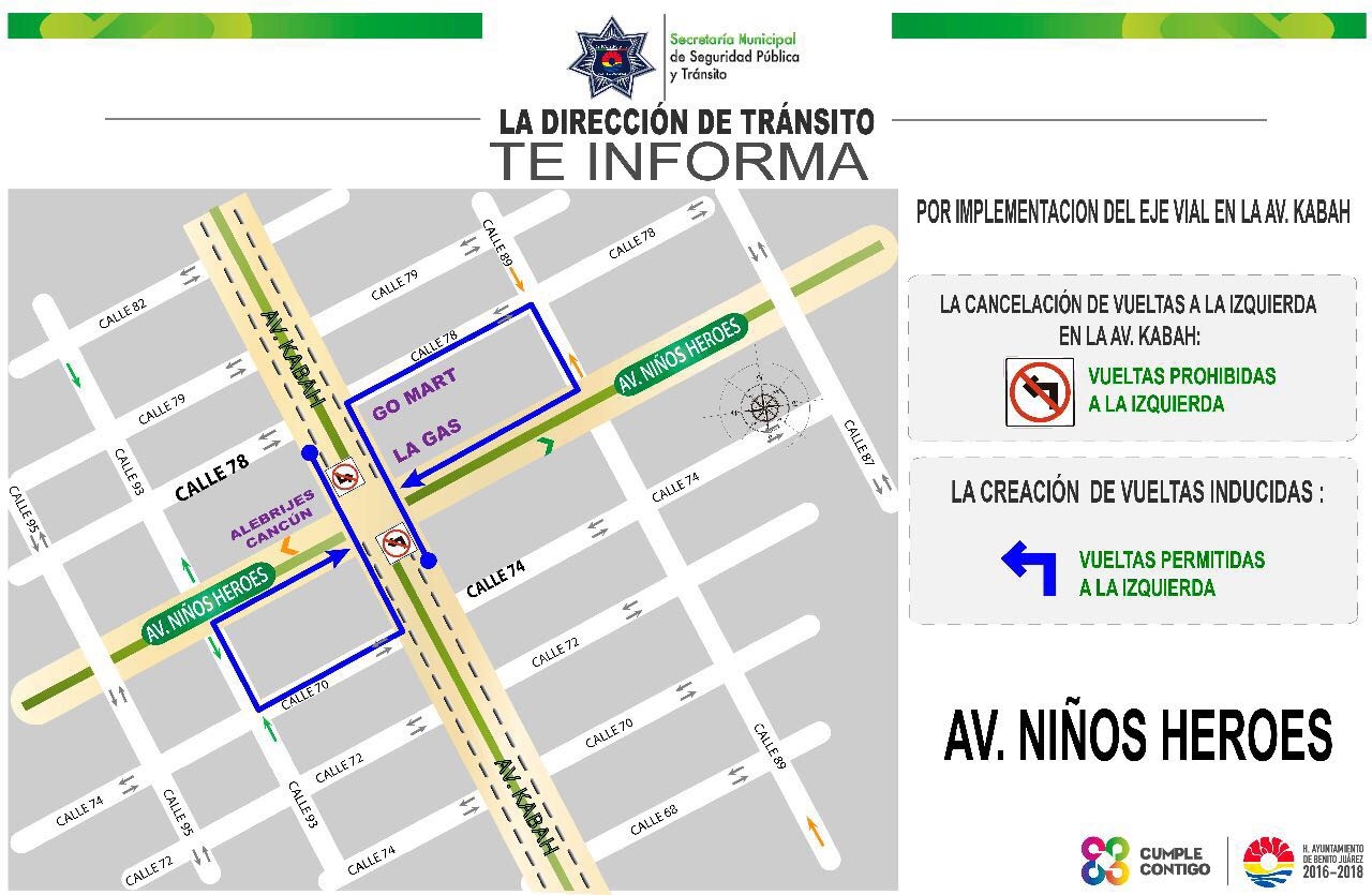 El Ayuntamiento de Benito Juárez continúa cerrando las vueltas a la izquierda sobre la avenida Kabah, y a partir del 25 de diciembre no se podrá hacer esta maniobra en los cruces con las avenidas Leona Vicario y Niños Héroes.