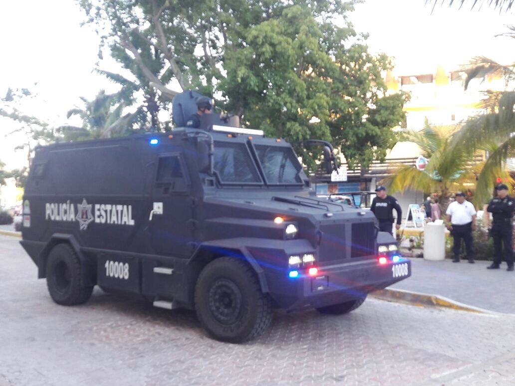 En coordinación con el ayuntamiento de Solidaridad, la Policía Estatal fortaleció su presencia operativa en la Quinta Avenida de Playa del Carmen, con una unidad táctica blindada conocida como [i]Rhino[/i], como parte del Operativo Invierno Seguro 2017.