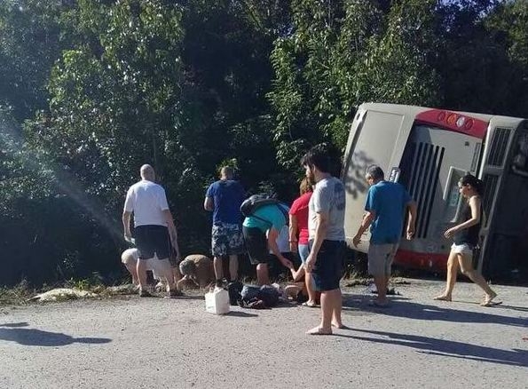 La unidad transportaba turistas de un crucero de Royal Caribbean, a quienes llevaba rumbo a la zona arqueológica de Chacchoben sobre la vía, cuando se registró el accidente.