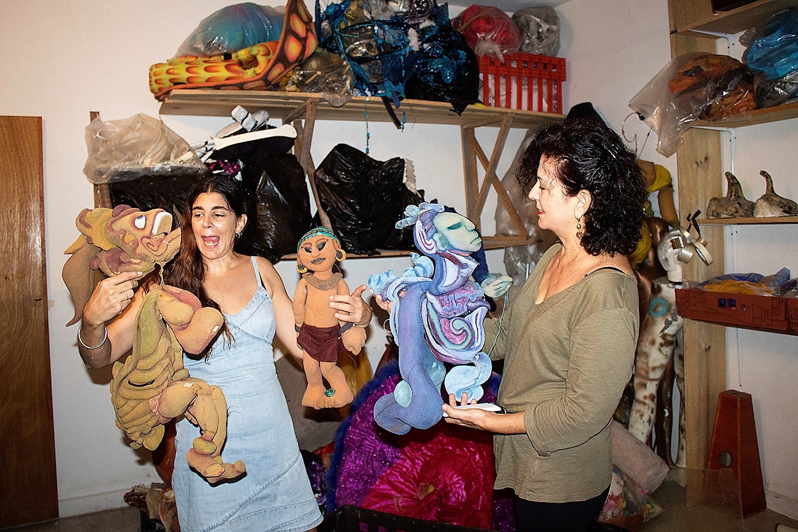 “Yo soy la creativa que está detrás de todo esto. Yo escojo los materiales, ideo los títeres, los muñecos de papel mache, las marionetas, la ropa”. Me señala al fondo una costurera, frente a una máquina de coser, que está haciendo un vestido para alguna presentación.