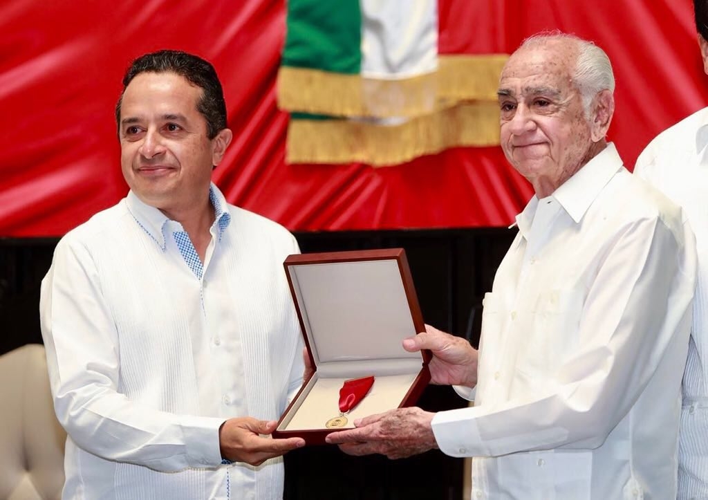 El gobernador Carlos Joaquín González encabezó este jueves la sesión solemne con motivo de la entrega de la medalla al mérito cívico “Lic. Andrés Quintana Roo”, que fue adjudicada al general Rafael Eustacio Melgar Andrade, a través de su segundo hijo, Daniel Melgar Reguera.