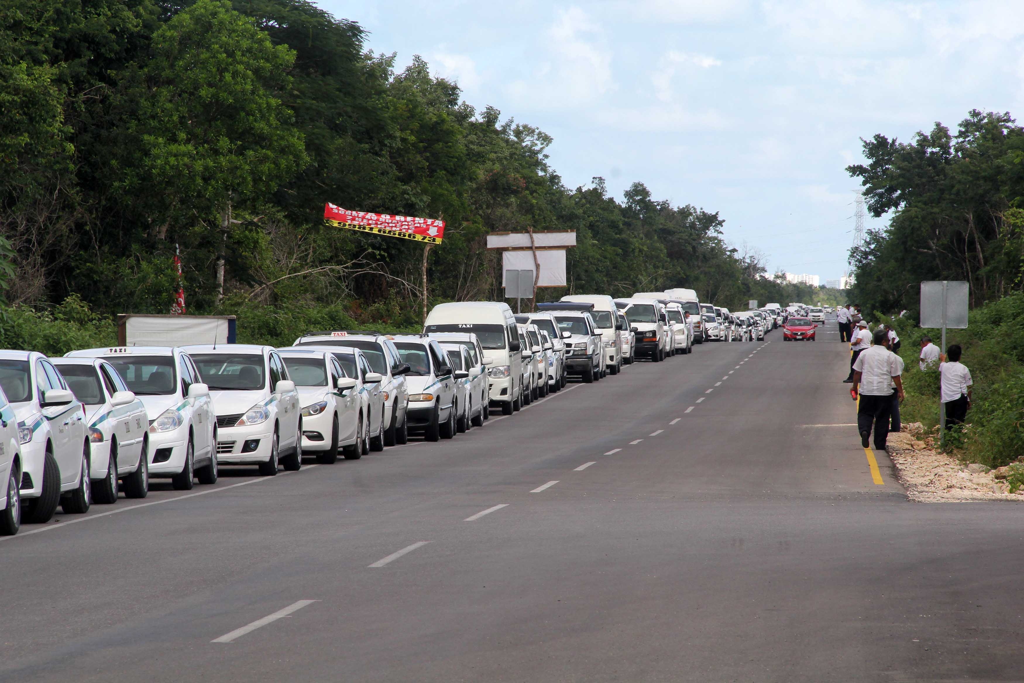 Grupos de taxistas de Cancún, Cozumel y Playa del Carmen respondieron a la iniciativa, manifestándose a las afueras de la sede legislativa, en donde tuvo que reforzarse la seguridad.