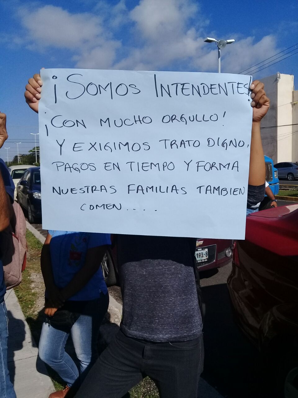Con cartulinas exigiendo trato digno, aguinaldo, no más retrasos en sus pagos e incluso la renuncia de Juan Carlos Gaytán Goas, subsecretario de Recursos Humanos, los inconformes dijeron representar a más de 200 intendentes y algunos maestros sin plaza de Playa del Carmen, muchos de los cuales no pudieron venir por estar trabajando.
