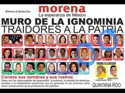 En ese [i]muro[/i], se exhibió a todos los legisladores locales y federales que votaron a favor del [i]gasolinazo[/i] y privatización del petróleo, una de las principales causas políticas de Andrés Manuel López Obrador.