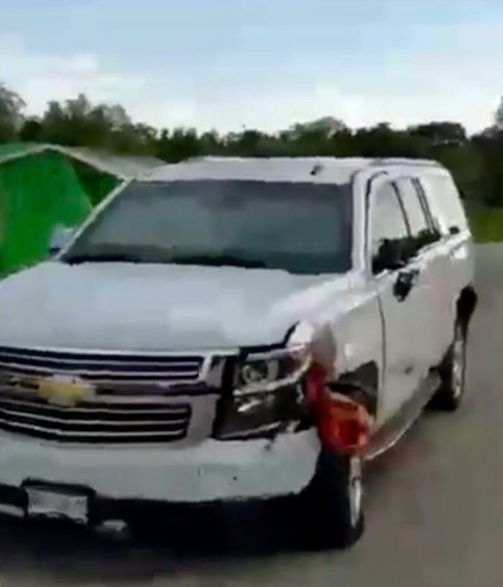 Cerca de las 18 horas, se reportó este accidente en el tramo de la carretera Bacalar-Chetumal, a la altura del poblado de Pedro A. Santos, en donde el conductor se incorporaba a la carretera federal sin percatarse el paso de la unidad automotriz, que escoltaba otra Suburban que trasladaba al Fiscal General a la ciudad de Cancún.