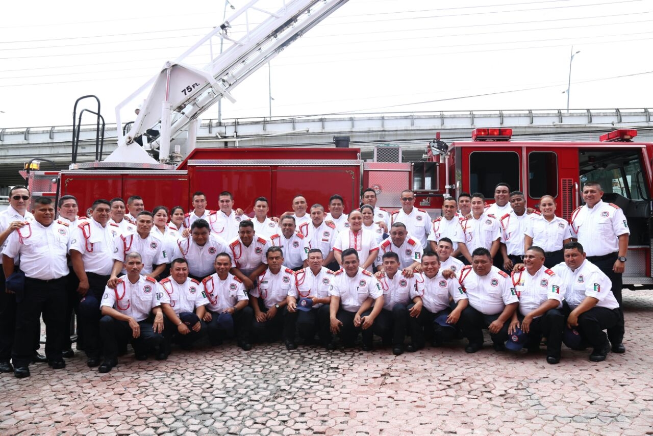 La presidente municipal de Solidaridad, Cristina Torres Gómez, entregó a la Dirección de Bomberos un carro bomba con escalera de 30 metros de altura, una ambulancia, uniformes y equipamiento con una inversión de un millón 800 mil pesos, acción que se llevó a cabo en el marco del Día Nacional del Bombero.