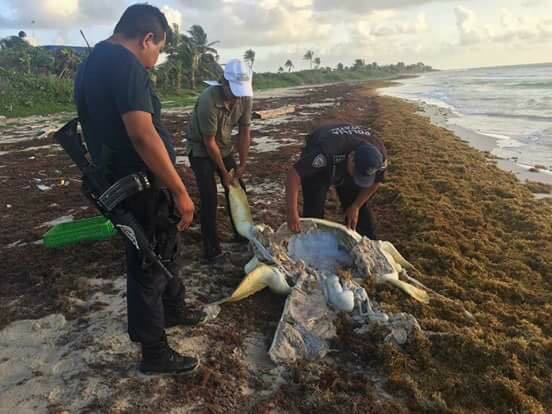 El pasado viernes durante la madrugada, el Comité de Vigilancia Ambiental Participativa de la Tortuga Marina y Recursos Naturales "Proyecto Aak Majahual", halló restos de dos tortugas verdes marinas que habían sido desmembradas para extraer su carne.