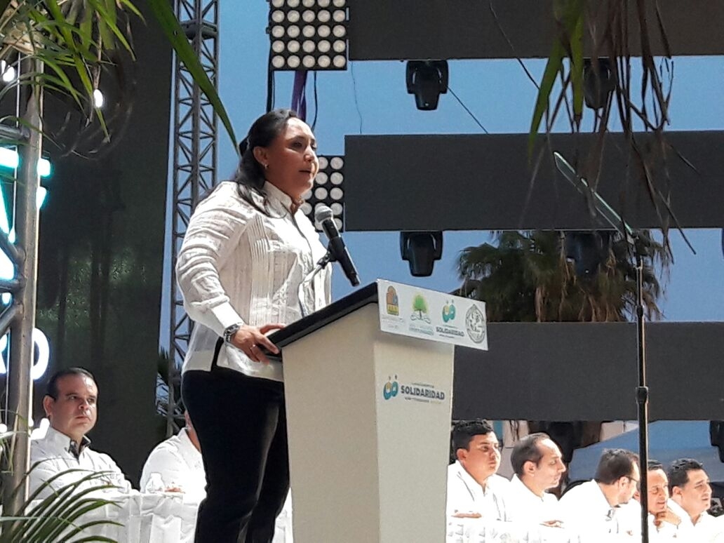 En el 24 aniversario de la creación del municipio de Solidaridad, la plaza 28 de Julio fue el marco para la celebración de la Sesión Pública y Solemne, en la que ante los representantes de los Poderes Ejecutivo, Legislativo y Judicial, la presidente municipal de Solidaridad, Cristina Torres Gómez, afirmó que "Solidaridad es más grande que los odios y los miedos personales, es grande por su gente" y refrendó el compromiso de su gobierno para recuperar la tranquilidad y orden.