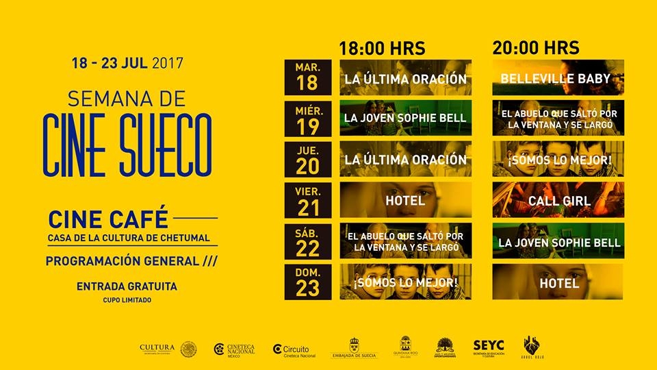 Durante la [i]Semana de Cine Sueco[/i] en Chetumal, se exhibieron siete largometrajes provenientes de la industria cinematográfica sueca de diferentes géneros y narrativas contemporáneas en el Cine Café de la Casa de la Cultura.