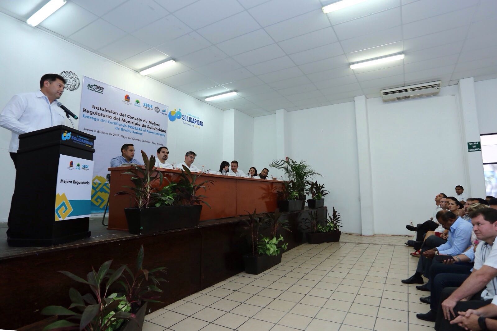 Durante la instalación del Consejo de Mejora Regulatoria de Solidaridad, el gobierno municipal se comprometió a agilizar los trámites y servicios que ofrecen las diferentes direcciones del ayuntamiento, con el fin de reducir costos de operación y mejorar la calidad en la atención de los ciudadanos.