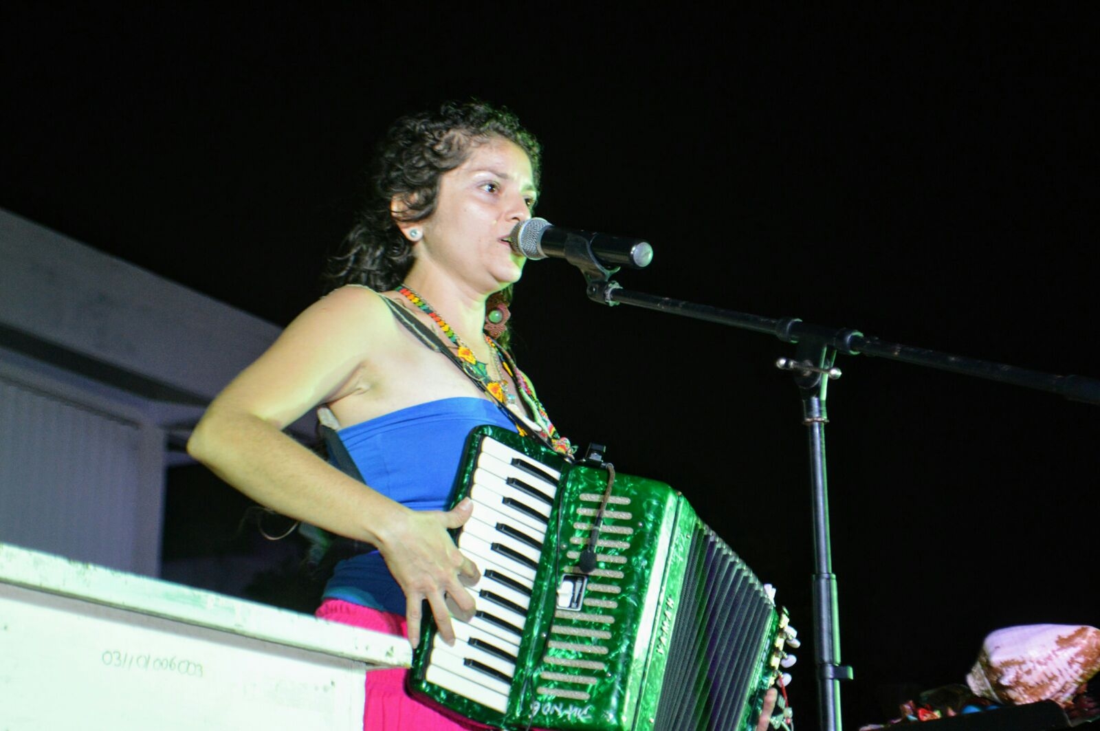 Durante el tercer día de la gran fiesta de los sentidos, se presentó la cantautora tabasqueña (radicada en Mérida) María Moctezuma, reconocida por su particular “sonido raizoso”, quien actuó en la explanada de la Casa de Cultura con sus sonidos eclécticos, prehispánicos y modernos.