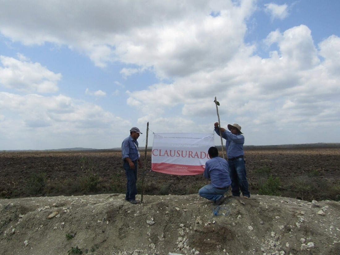 La primera clausura fue en el ejido [i]San Fernando[/i] por realizar trabajos y actividades de desmonte sin la autorización de la Semarnat. Los inspectores constataron la afectación en una superficie de 113.4 hectáreas que contenían vegetación secundaria de selva baja espinosa, para el cultivo y siembra de sorgo y maíz, entre otros.