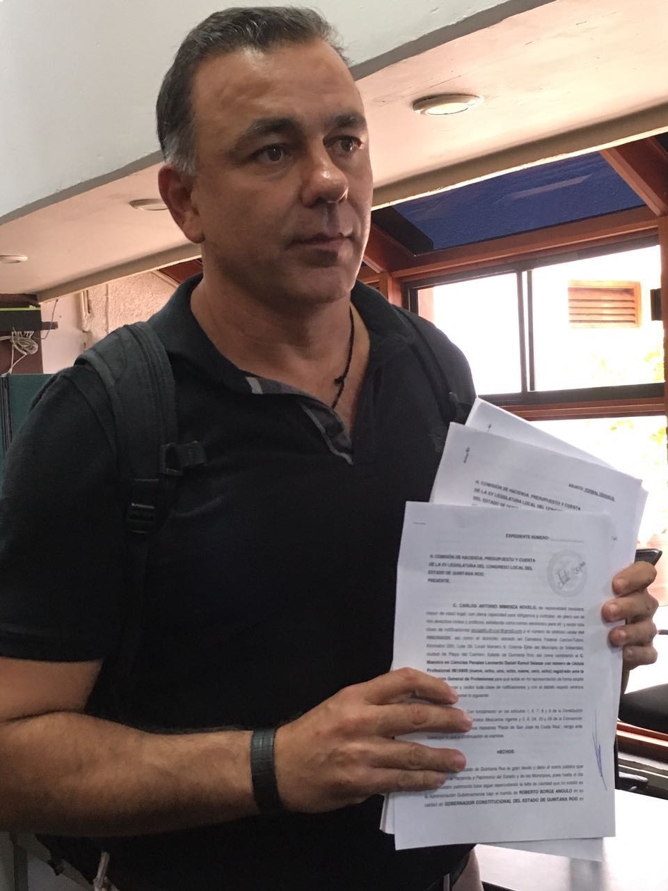 El empresario Carlos Antonio Mimenza Novelo, presentó este lunes, ante Oficialía de partes del Congreso del estado, una demanda de juicio político en contra de 26 ex funcionarios de la pasada administración estatal y del Ayuntamiento de Solidaridad, incluídos el ex gobernador Roberto Borge Angulo y el ex candidato priísta a la gubernatura Mauricio Góngora Escalante.