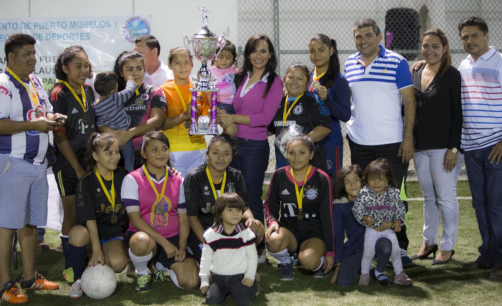 En el marco de la ceremonia de premiación de la Liga Femenil de Futbol Siete de la colonia Pescadores, que celebró su cuarta edición. La primera autoridad portomorelense indicó que el objetivo es convertir al municipio más joven del país en tierra de campeones.