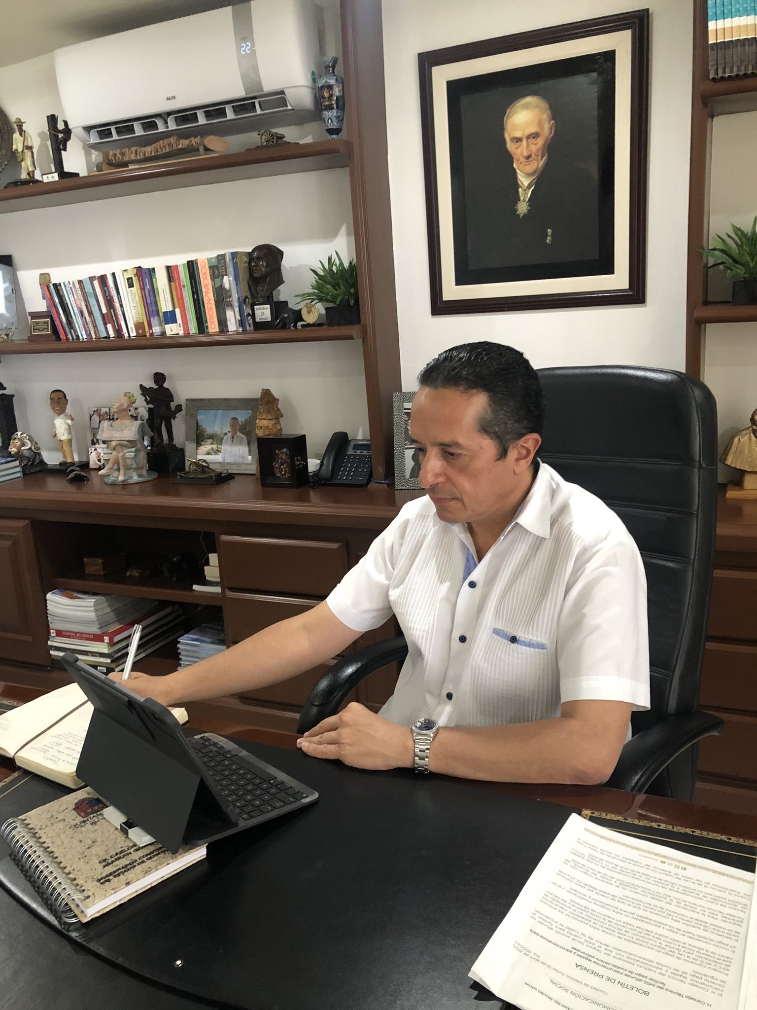 El gobernador de Quintana Roo, Carlos Joaquín González, sostuvo una videoconferencia con líderes del sector turístico del estado, en la que presentó el paquete de estímulos fiscales y los resultados de las acciones del Plan Juntos Saldremos Adelante en la atención de la contingencia sanitaria por el COVID-19.