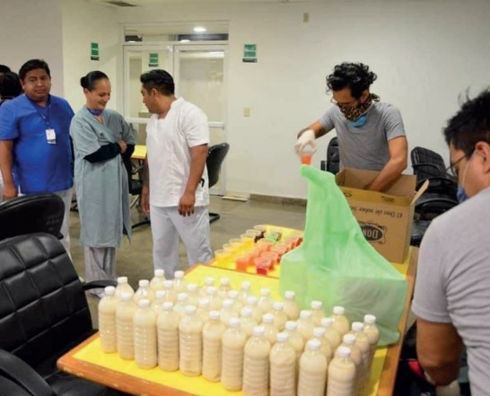 Como un gesto de aliento hacia la comunidad médica, los voluntarios están llevando comidas preparadas a los nosocomios; la semana pasada entregaron 125 órdenes entre el hospital del Seguro Social en Villamar y el general de Playa del Carmen.