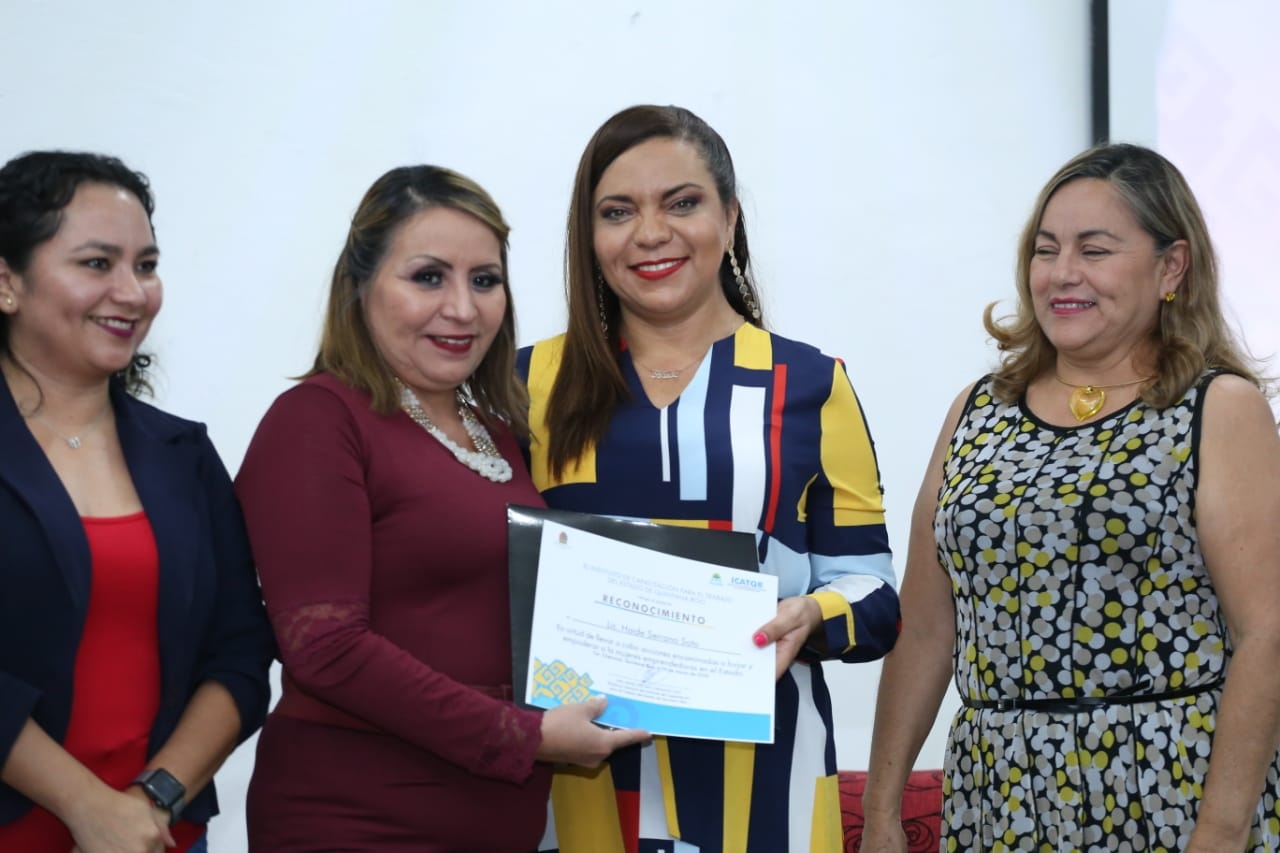 En este marco, la directora general del ICATQR María Cristina Coronado Cruz entregó reconocimientos a cinco mujeres que se han destacado por el trabajo desarrollado para avanzar en la erradicación de la violencia de género.