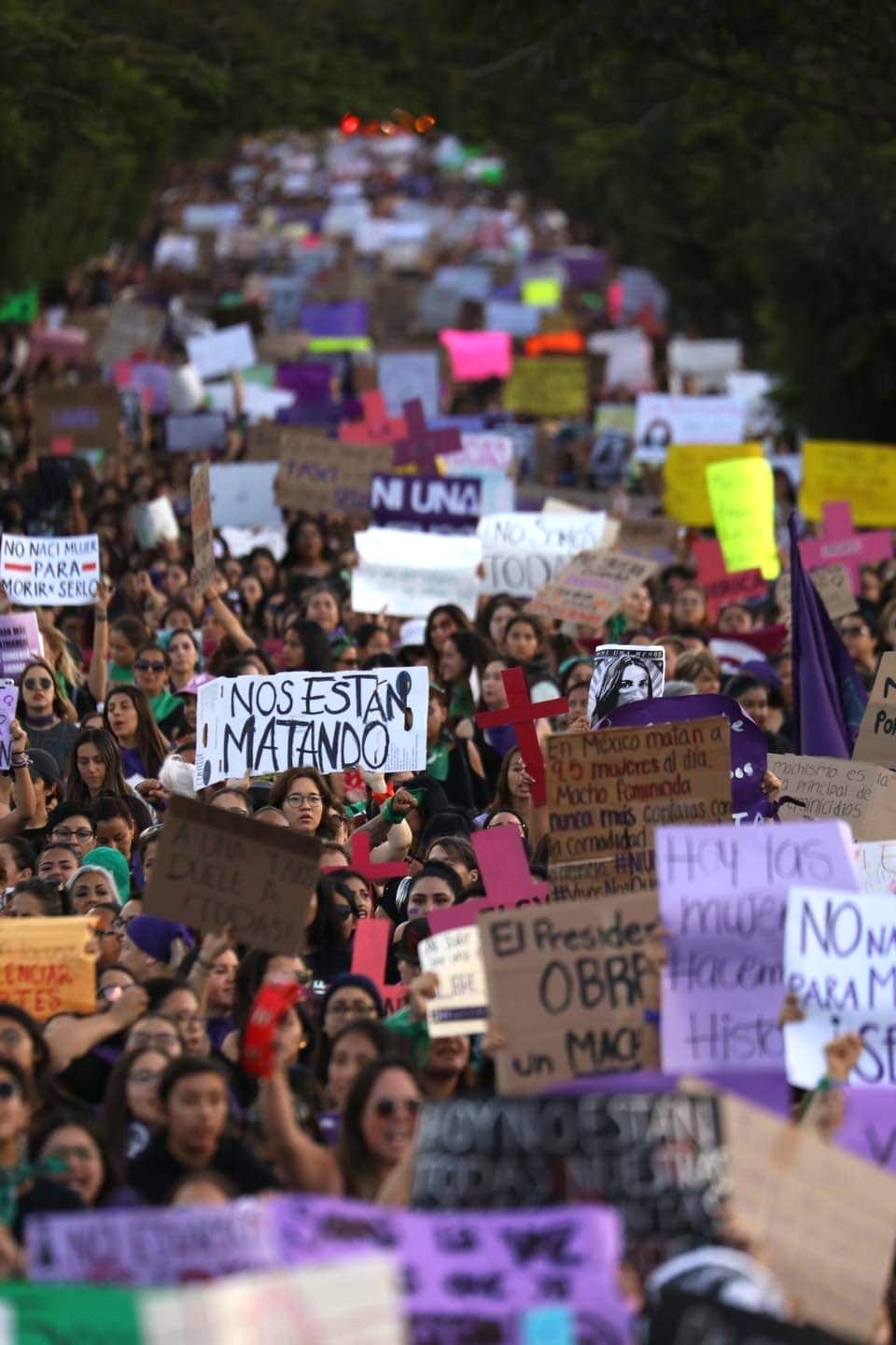 El cántico que más se escuchó durante la nutrida manifestación fue el de “¡Mujer, escucha, esta es tu lucha!”, y “¡Ni una más, ni una menos, ni una asesinada más!”; otras expresiones escritas más señalaban: “Mujeres al pie del cañón”, “Somos el corazón de las que ya no laten”, “Nos queremos vivas, unidas y libres”.