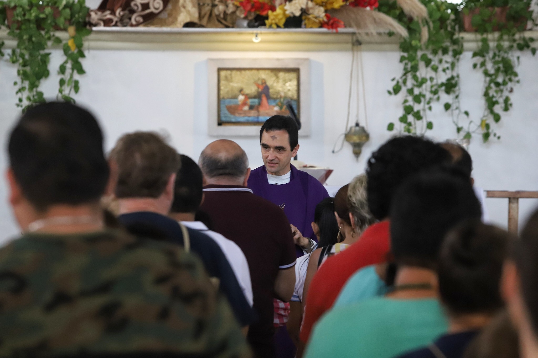 Al imponer la ceniza el miércoles, el sacerdote invitó a los fieles a acercarse a la iglesia.