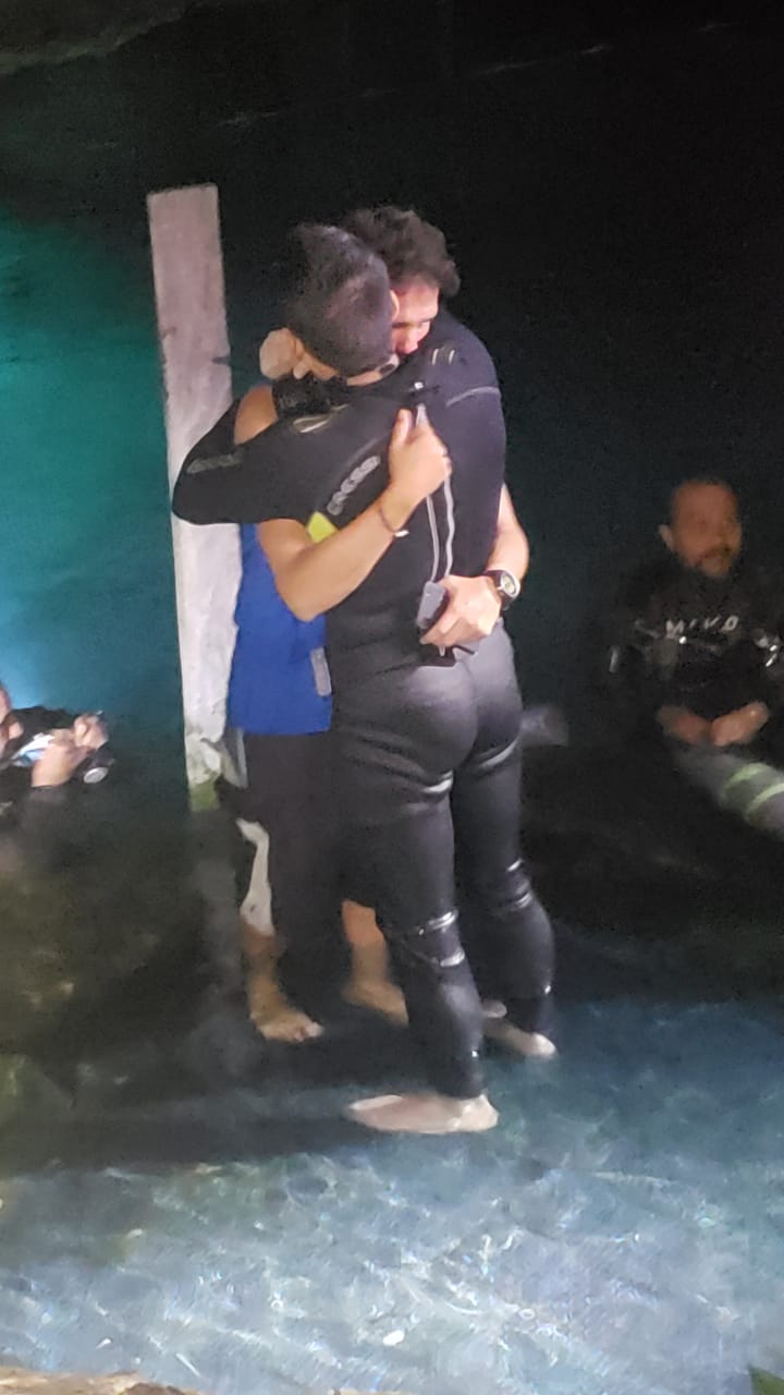 Tras cuatro horas de búsqueda el buzo Chiraca Casado, de 35 años, originario de Venezuela, salió acompañado de sus rescatistas y mencionó: “esto es un verdadero milagro”.
