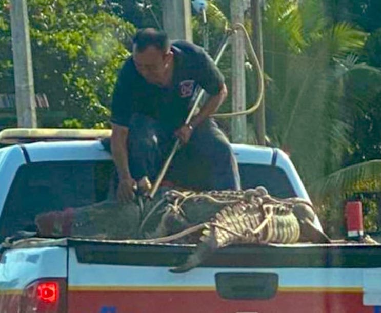 Alondra Martínez Flores, directora de Ecología del Ayuntamiento de Othón P. Blanco, explicó que en los últimos meses ya había salido de su estanque en algunas ocasiones, pero en fechas recientes se volvió en un hecho recurrente, por lo que se decidió hallarle un nuevo hogar, toda vez que puede ser un riesgo para la ciudadanía.