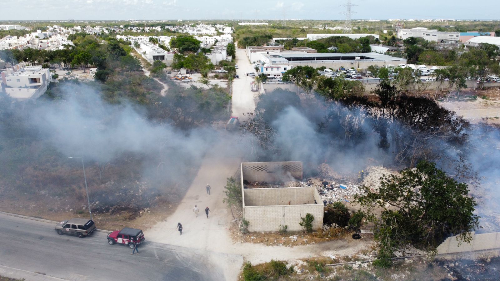 Este jueves 13 de mayo se registró un incendio en un lote baldío del municipio Solidaridad, en Quintana Roo.